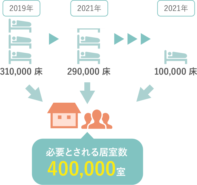 | 需給バランス | 一部エリアを除き供給過多 | 入所対象者は増加 入所定員は不足 |